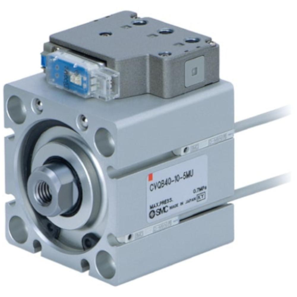 - El nuevo cilindro compacto CVQ de SMC con válvula solenoide integrada se utiliza en aplicaciones de empuje y sujeción en la ingeniería mecánica.