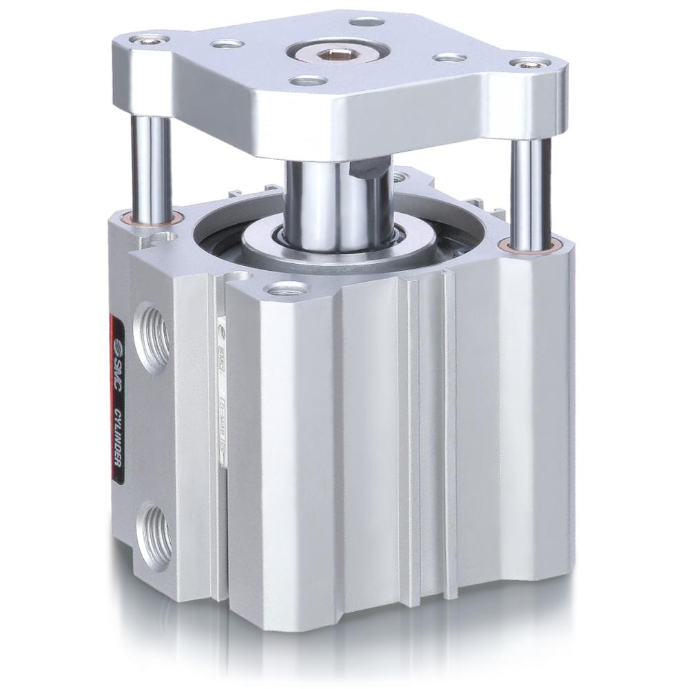 - La serie CDQM tiene las mismas dimensiones de montaje que la serie CDQ2, pero en comparación con la serie CDQ2K, tiene una resistencia a la carga transversal cuatro veces mayor y una tolerancia de torsión de ±0,2°.