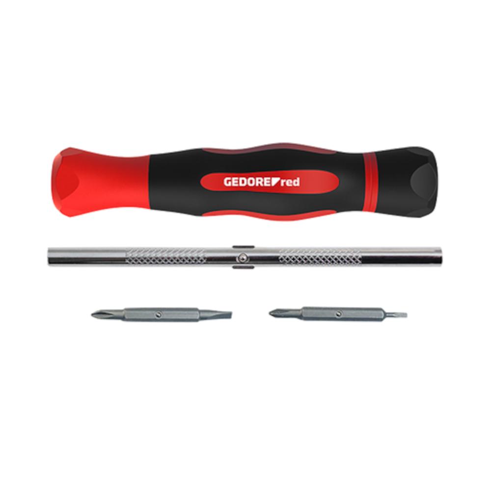 - El destornillador de puntas de precisión 4 en 1 cuenta con un mango, un vástago con alojamiento para puntas de precisión y dos puntas dobles. Estas cubren los perfiles PH00 y ranura de 1,5 mm, así como PH0 y ranura de 3 mm, y permiten múltiples aplicaciones en trabajos de atornillado de precisión.