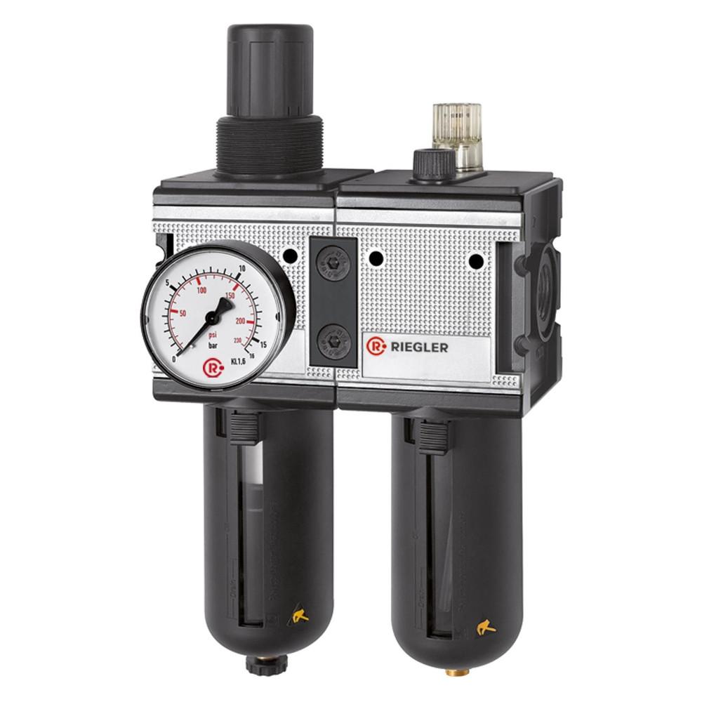 - La unidad de mantenimiento de 2 piezas «multifix» en tamaño BG 4 sirve para filtrar y regular el aire comprimido en instalaciones neumáticas.