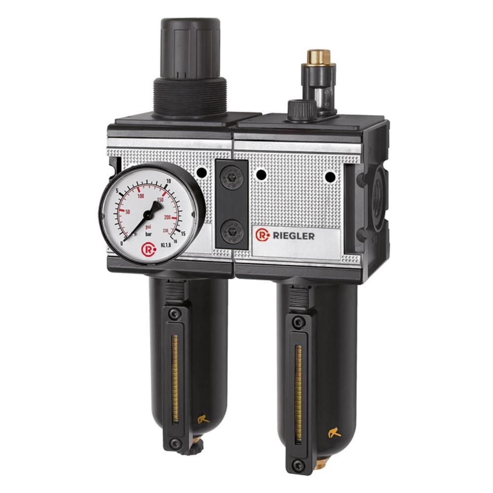 - Cuenta con una conexión G 3/4", un robusto depósito metálico con tubo de visión, una finura de filtrado de 5 µm y un caudal de hasta 12 000 l/min con un rango de regulación de 0,5 a 10 bar.